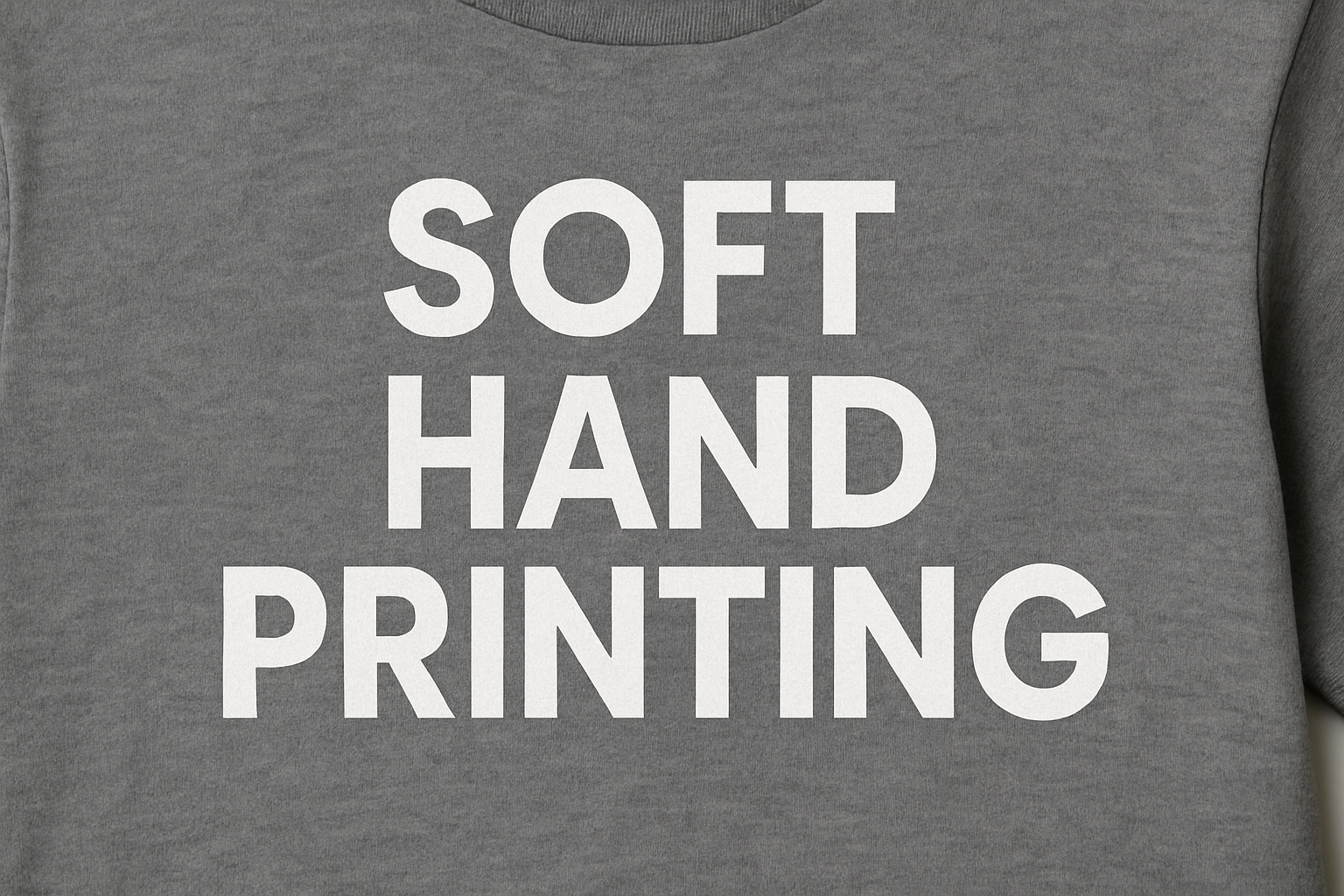 Soft hand printing is available in plastisol and water base inks. Soft Hand is a technique that produces a lightweight, smooth print that blends seamlessly into the fabric, leaving almost no noticeable texture.